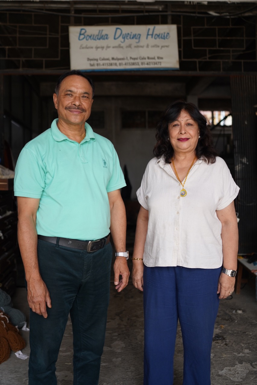 Nepal’s hand-knotted carpet sector grew rapidly in the 1970s and 1980s, when Tibetan refugees and local entrepreneurs developed a distinct Tibetan-Nepali style that gained international recognition. And by the 1990s, carpets had become one of Nepal’s top exports, providing livelihoods for tens of thousands of people. It was in this rapidly evolving context, in 1993, that Suman and Ratee Shrestha founded Boudha Dyeing House. Suman’s background in carpet materials and small-scale dyeing allowed him to spot a gap in the market: while most dye houses at the time served multiple industries, none specialised only in carpet yarns. So the Shresthas decided to do just that.