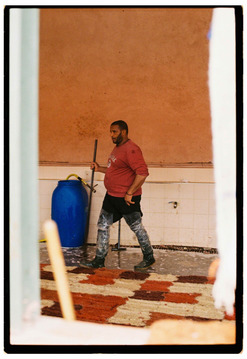 Today these textiles travel far beyond the landscapes where they are made. Moroccan carpets move from villages to urban workshops, then from traders’ storerooms to international showrooms and online marketplaces. In the process, they acquire new roles as collectible pieces, high-end design statements, or cultural artefacts within interiors worldwide. At the same time, during this journey the distance between maker and end consumer grows wide, and with it the visibility of labour. Hours at the loom, the preparation of wool, and the knowledge carried between generations rarely accompany the carpet as it enters new contexts. When this context disappears, the labour behind the object becomes harder to see and acknowledge, influencing how carpets are priced, traded, and how the work of artisans is valued across global markets.
