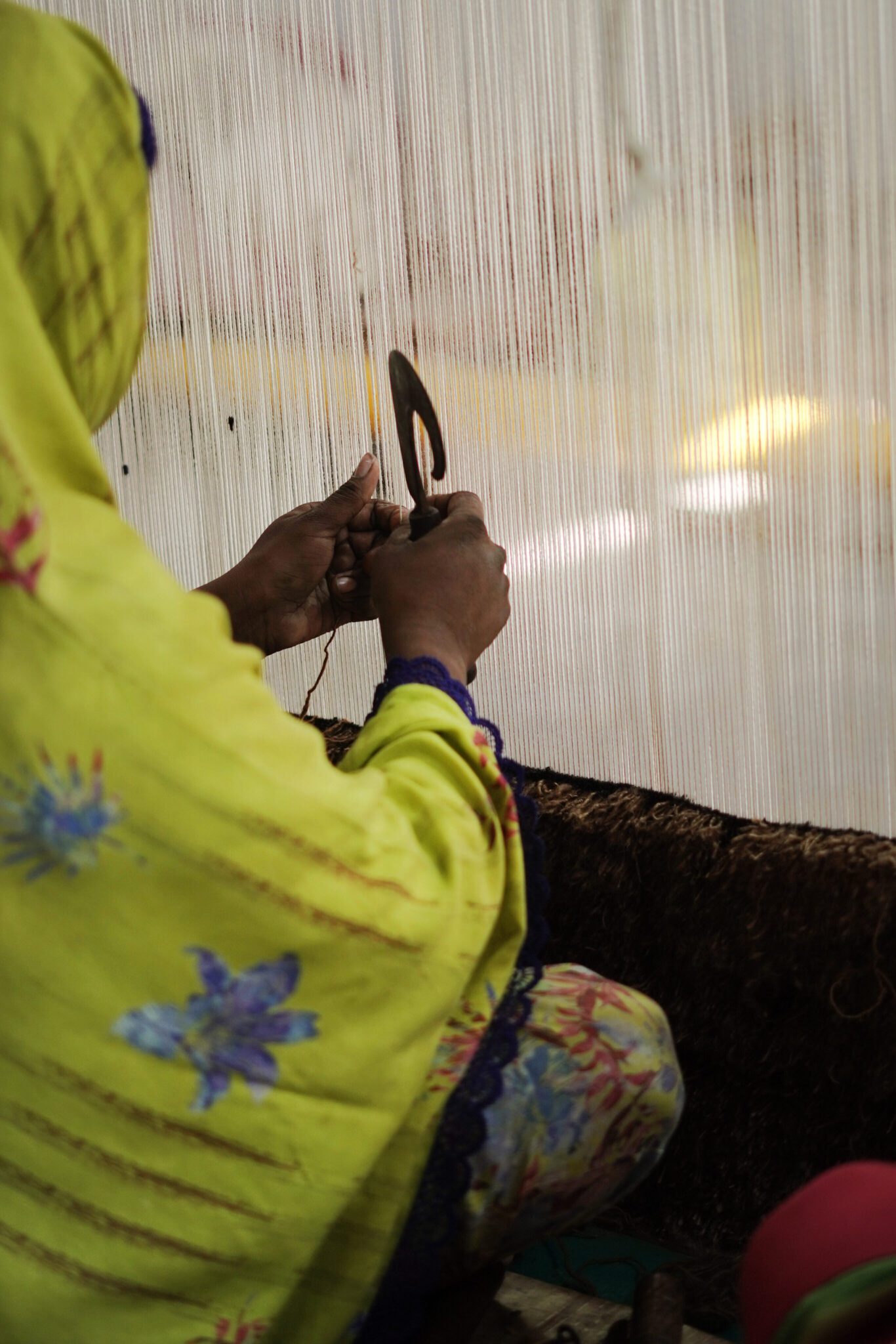 “Working here has reduced the distractions I faced at home, allowing me to focus better on weaving. It has improved both my productivity and my earnings.”